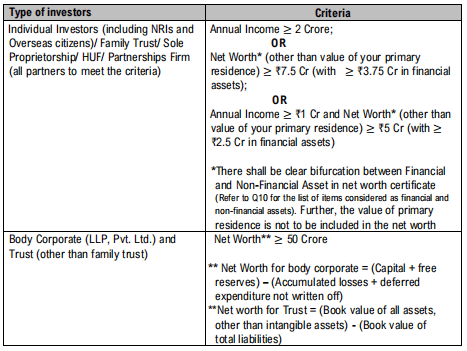 - Check which eligibility criteria for accreditation do investor fulfill.